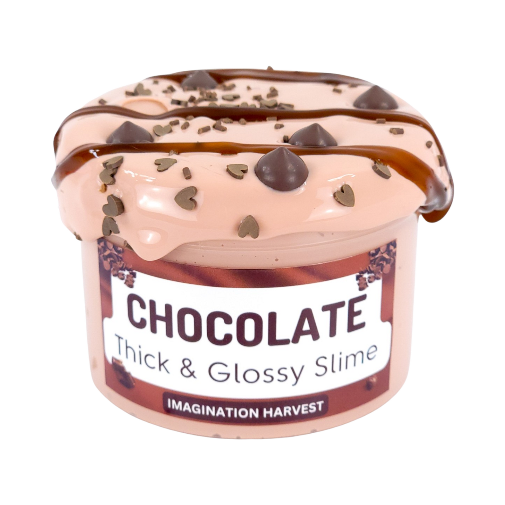 Indulge your senses with our chocolate scented, chocolate-colored, shiny, thick, and glossy slime! This popping, crunchy slime comes with clay chocolate sprinkles and plastic chocolate chips, and a 2oz container of chocolate syrup slime for the top.