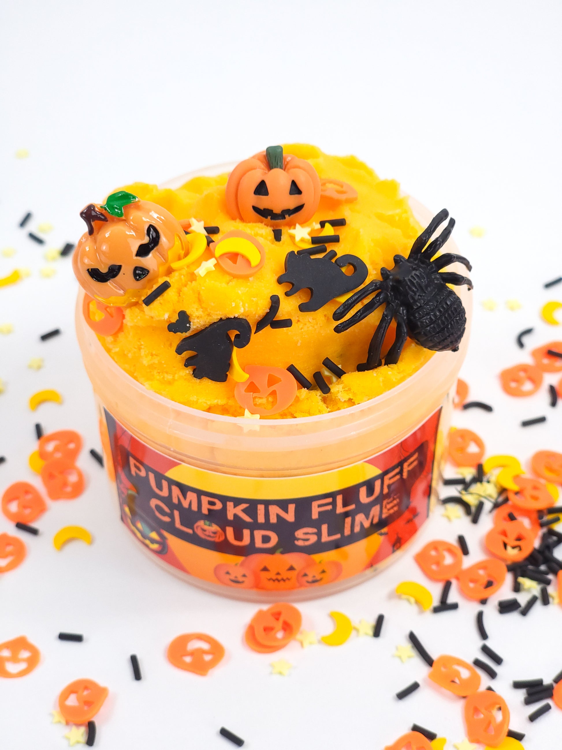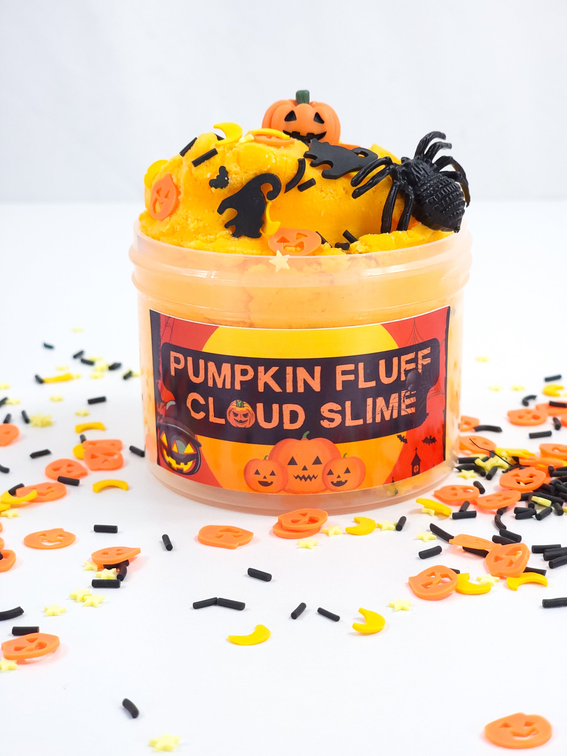 Pumpkin Fluff is a super fluffy, stretchy, soft cloud slime that smells like pumpkin pie! It's neon orange and comes with pumpkin fimo slices, a pumpkin charm and other Halloween sprinkles. Pumpkin Fluff Cloud slime is part of our Halloween Collection!